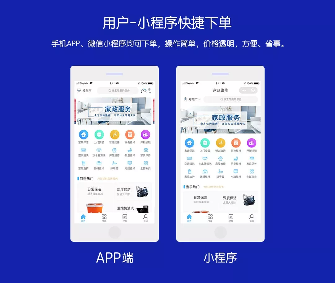 手机APP、微信小程序,两种下单方式,微信小程序,即用即走,无需下载APP,减少内存。APP,手机号码直接登录,不会关联微信等其他账号信息,隐私性更好。满足不同人群的使用习惯。